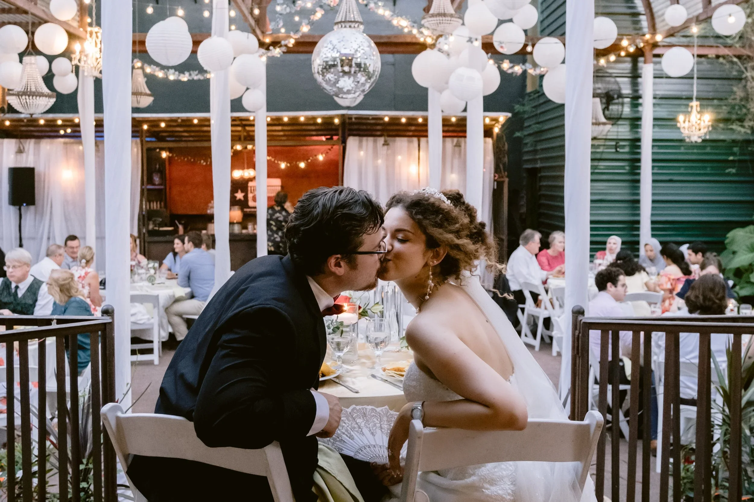 Couple sharing private kiss before speeches Avant Garden